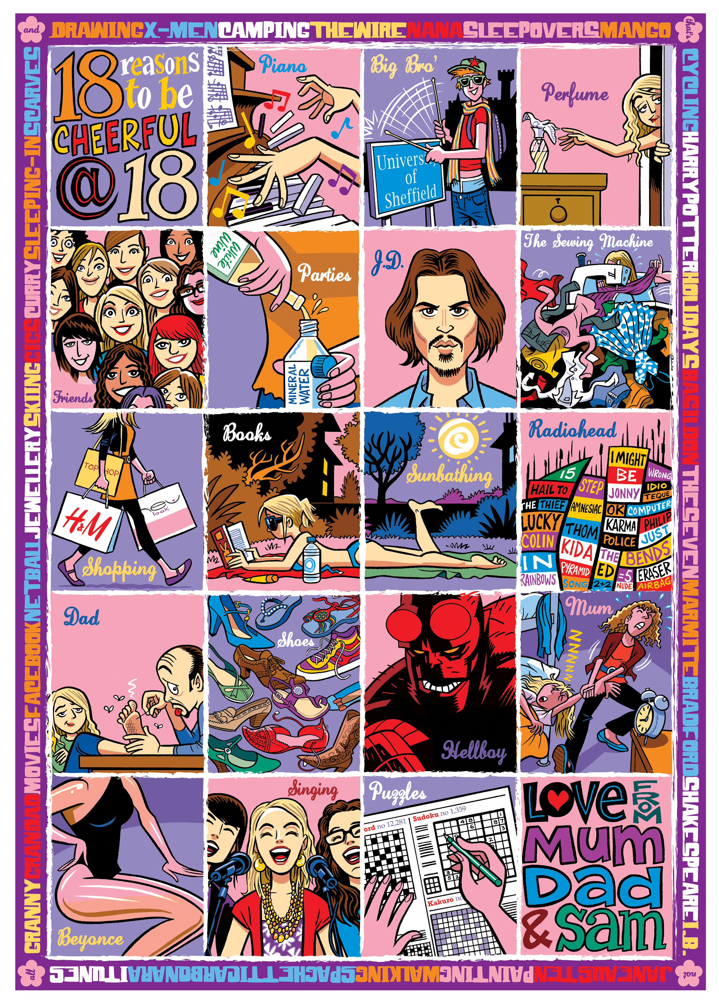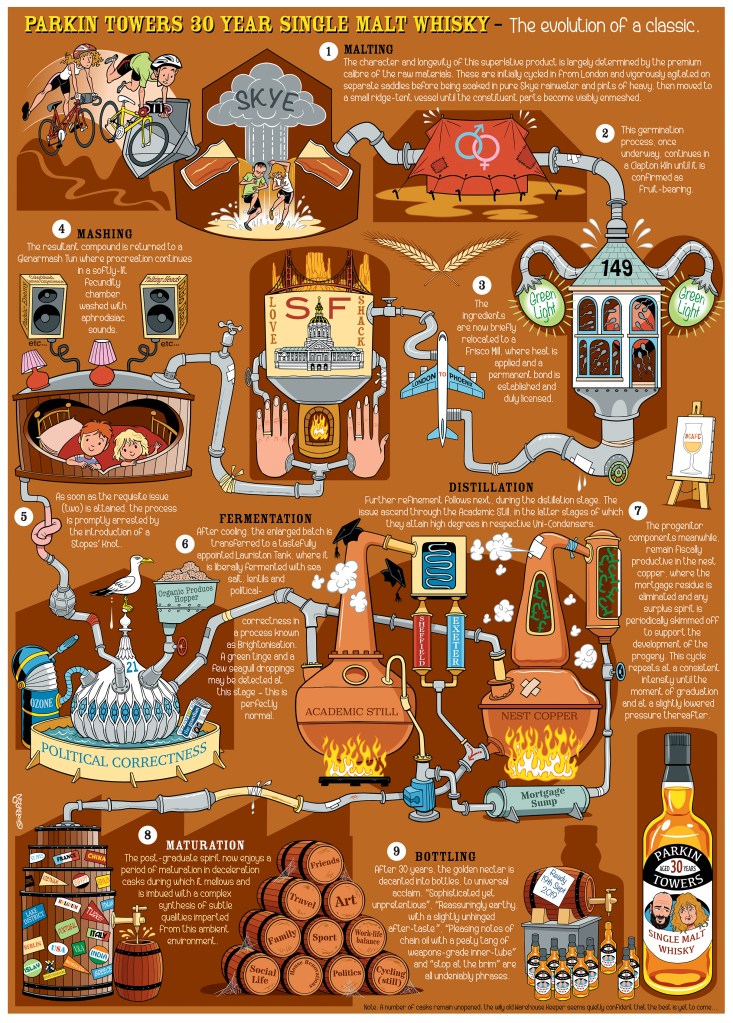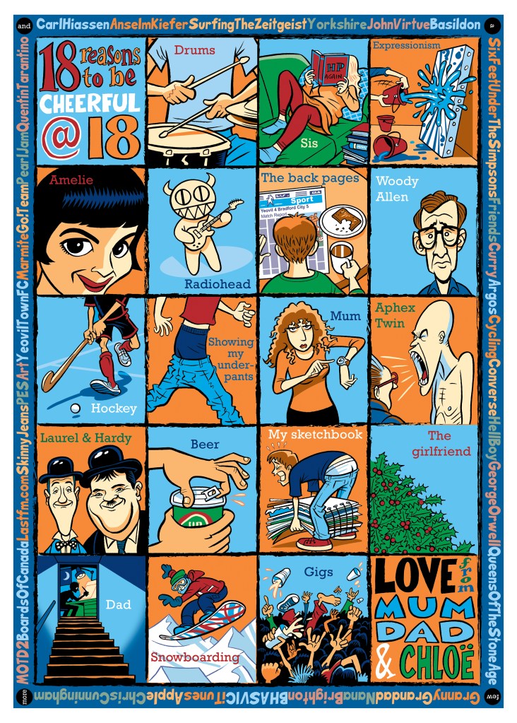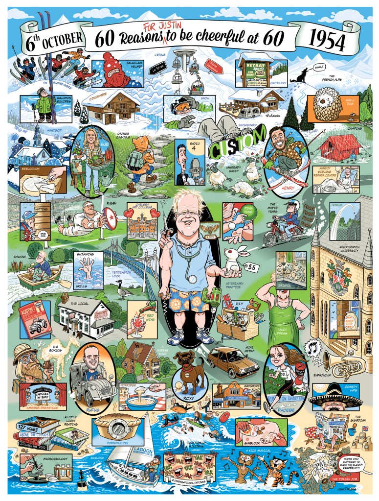 I’ve produced countless bespoke images over the years for birthdays, anniversaries, invitations, congratulations and the like. These have mostly been for friends and family but I’ve also had a number of private commissions for this sort of personalised illustration. Although by their nature they tend not to be the most lucrative jobs, they are frequently among the most enjoyable to work on, which I think comes across in the resulting artwork.